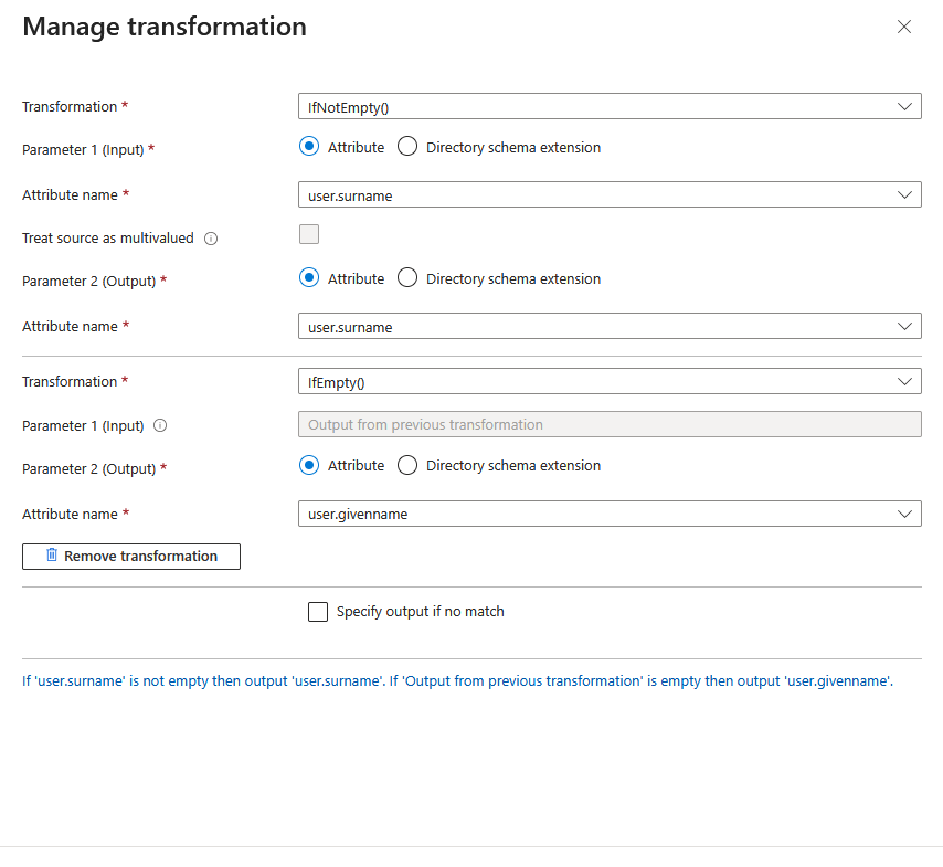 This transformation is evaluated at authentication time and does not write back to Entra ID.