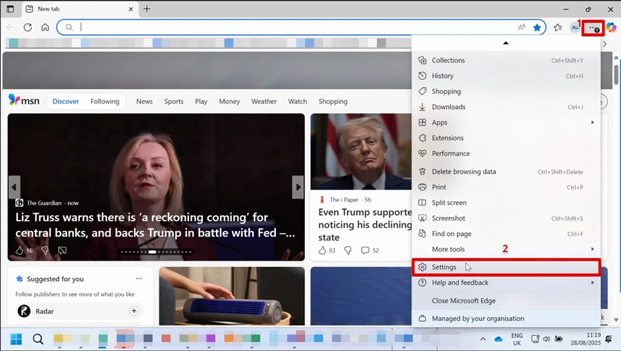 Step 1: Open Edge > Settings and more (⋯) > Settings.