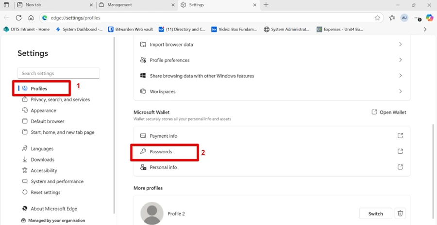 Step 2: Click the three dots (…) > Settings > Profiles > Passwords.